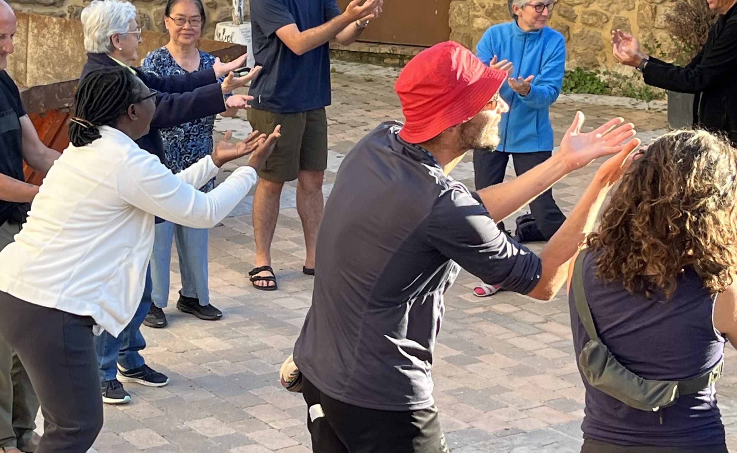 Etter bønnen er det enda litt tid til pleie av føtter og sjeler, før dagen med pilegrimene avsluttes med åndelig dans på kirkeplassen. En dans som kan minne om en god meditasjon med bevegelse.