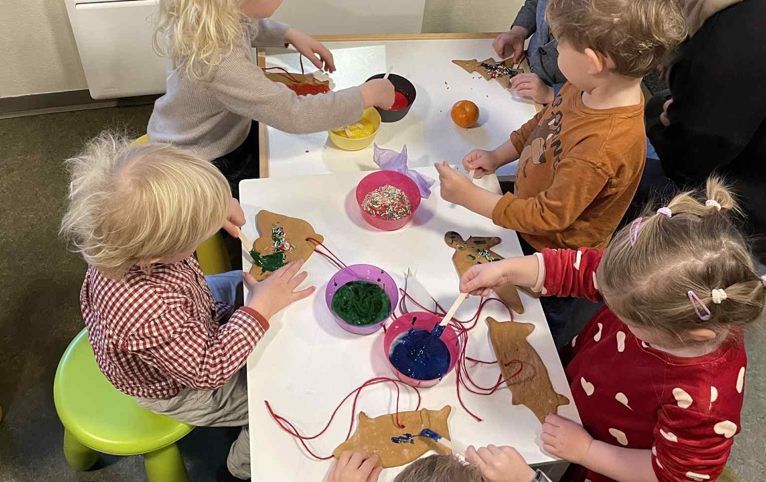 Forskjellen til denne desembersøndagen, var fokus på juleforberedelsen. Vel, en ganske gøyal forberedelse, om barna skulle få si sitt. Ja, for her ble pepperkakefigurer pyntet.